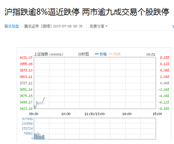一、A股連續3周暴跌,致使很多公司都被股票套住,據騰訊網7.8網報道:周三兩市巨幅低開,滬指跌6.97%擊穿3700、3600、3500三道整數關口,早盤兩市繼續重挫,截至發稿,滬指跌逾8%報3426點,深成指跌4.61%。